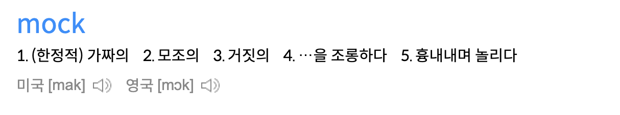 mock은 “가짜의, 모조의”라는 뜻을 가지고 있다. 즉, Mock API란 가짜 API를 의미한다. 백엔드 API 개발이 완료되기 전, 가짜 API를 만들어서 실제 API를 활용한 것처럼 개발하는 것이다.