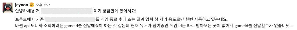 기획 단계에서 프론트엔드 팀원들과 백엔드 팀원들이 모두 참여하긴 했지만 이후 API 설계 과정에는 온전히 백엔드 팀원들만 참여했기 때문에 작성된 API 명세가 프론트엔드의 사정과 맞지 않는 경우가 종종 있었다.