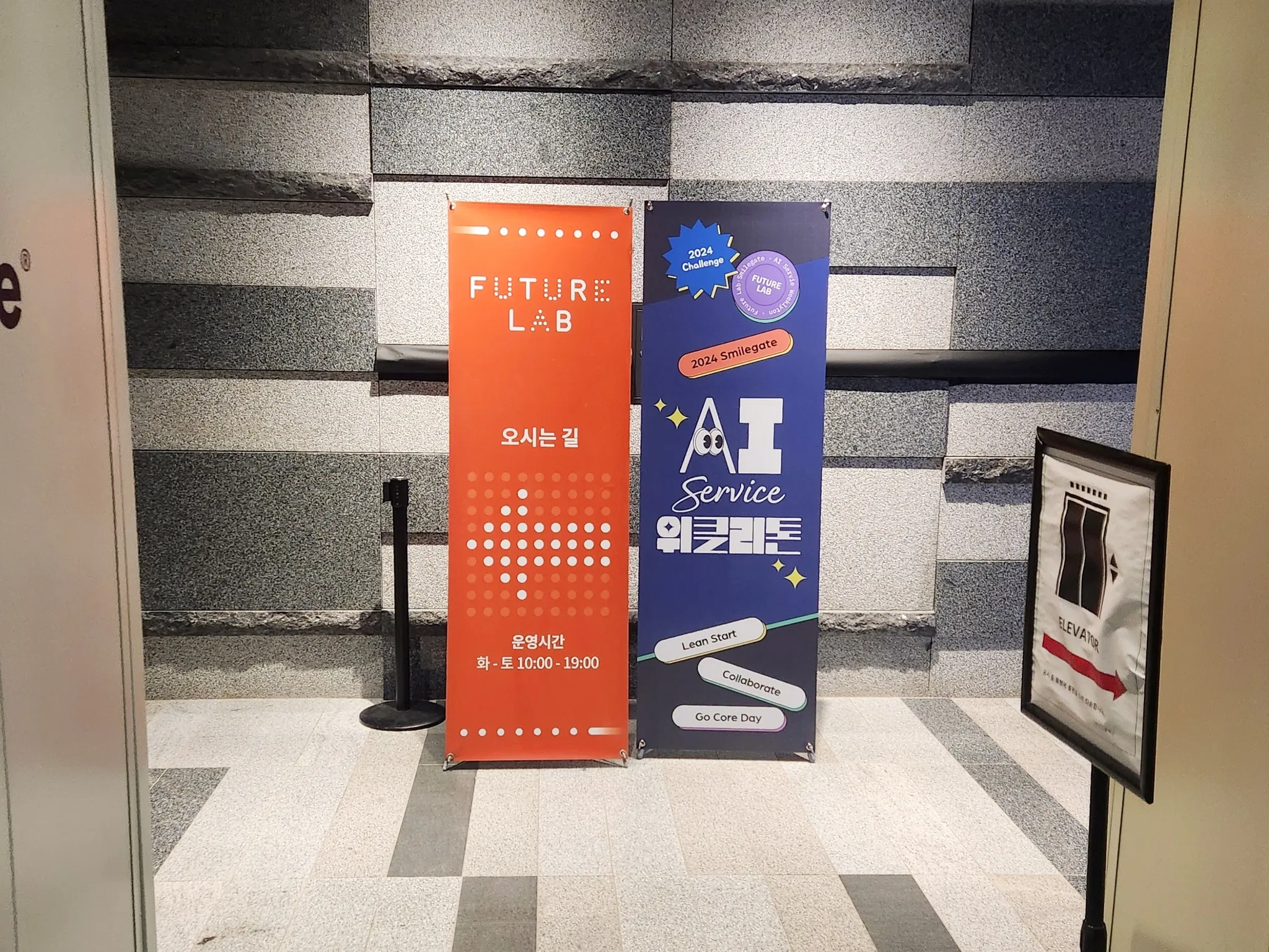 온보딩 이후 일주일간의 아이디어 검증 기간을 거치고, 판교의 스마일게이트 퓨처랩에서 열리는 집중 개발 데이에 참석했다. 판교로 가는 버스를 반대로 타는 바람에 정신이 없어서 입구 도착 사진만 남아 있다…