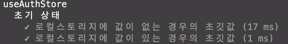 test("로컬스토리지에 값이 없는 경우의 초깃값", () => {// 기존에 저장된 로그인 상태가 없는 경우(LocalStorage.getItem as jest.Mock).mockReturnValue(null);// 테스트 로직...});test("로컬스토리지에 값이 있는 경우의 초깃값", () => {// 기존에 저장된 로그인 상태가 있는 경우(LocalStorage.getItem as jest.Mock).mockReturnValue(JSON.stringify({ accessToken: MOCK_ACCESS_TOKEN }));// 테스트 로직...});